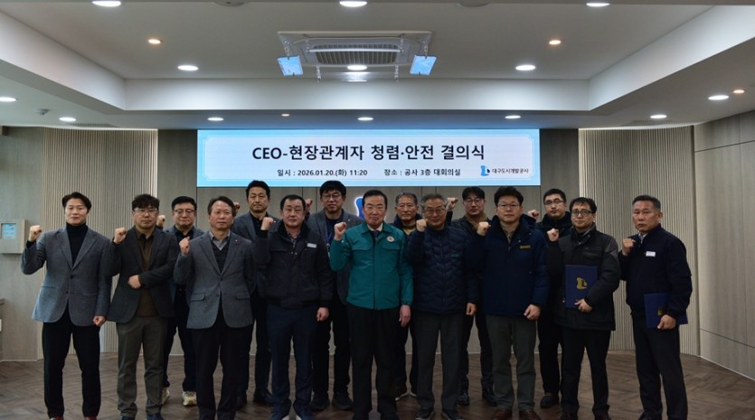 대구도시개발공사는 20일 본사 회의실에서 정명섭 사장 주재로 ‘청렴·안전 결의식’을 열고, 부패 없는 공정한 조직문화와 산업재해 없는 건설현장 실현을 다짐했다.