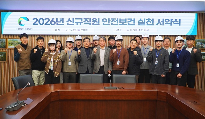 경북도개발공사(사장 이재혁)는 지난 20일 신규직원 8명을 대상으로 ‘2026년 신규직원 안전보건 실천 서약식’을 개최하고, 안전을 최우선 가치로 하는 조직문화 정착에 나섰다.