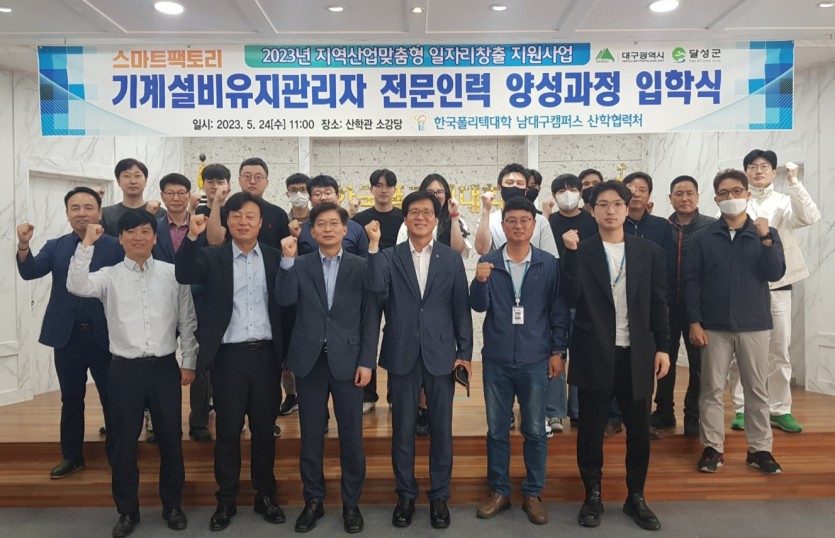 달성군과 한국폴리텍대학 남대구캠퍼스 산학협력처가 지난 24일 "스마트팩토리 기계설비유지관리자 전문인력 양성사업" 개강식을 개최했다고 밝혔다.