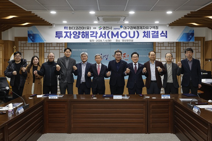 강상기 대구경북경제자유구역청장 직무대행은 “화더코리아(유)의 이번 투자는 영천첨단부품소재산업지구의 산업 경쟁력을 높이는 중요한 계기가 될 것”이라고 전했다.