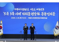 대한민국시장·군수·구청장협의회가 5극3특 균형성장 정책의 성공을 위해 기초지방정부 권한·재정 강화를 촉구하는 공동건의문을 채택했다.협의회는 2월 26일 국립아시아문화전당에서 민선8기 4차년도 제3차 공동회장단회의를 열고 '5극3특 시대 자치분권 강화 공동건의문'을 발표했다.조재구 대표회장(대구 남구청장)은 “수도권 집중을 극복하고 지역 주도의 국가발전을 이루기 위한 5극3특 균형성장 정책의 성패는 기초지방정부의 권한 이양과 재정 확충에 달려 있다”고 강조했다.협의회는 건의문에서 ▲권한 이양을 통한 기초지방정부 자치분권 강화 ▲지방교…