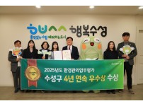 대구 수성구는 지난 24일 대구시가 주관하는 ‘2025년도 환경관리업무 평가’에서 4년 연속 우수상을 수상했다.이번 평가는 대구시 9개 구·군을 대상으로 2025년 한 해 동안 추진한 환경정책, 기후대기, 수질개선 등 총 28개 항목의 환경관리 업무 추진 실적을 종합적으로 평가해 우수기관을 선정하는 방식으로 진행됐다.수성구는 용학도서관 기후환경교육 우수도서관 지정, 생태관광 투어 등 다양한 환경교육 프로그램 운영, 녹색제품 구매 실적, 수질오염물질 배출사업장 관리, 자연환경 보전을 위한 망월지 생태축 복원사업 추진 등 다양한 분야에…