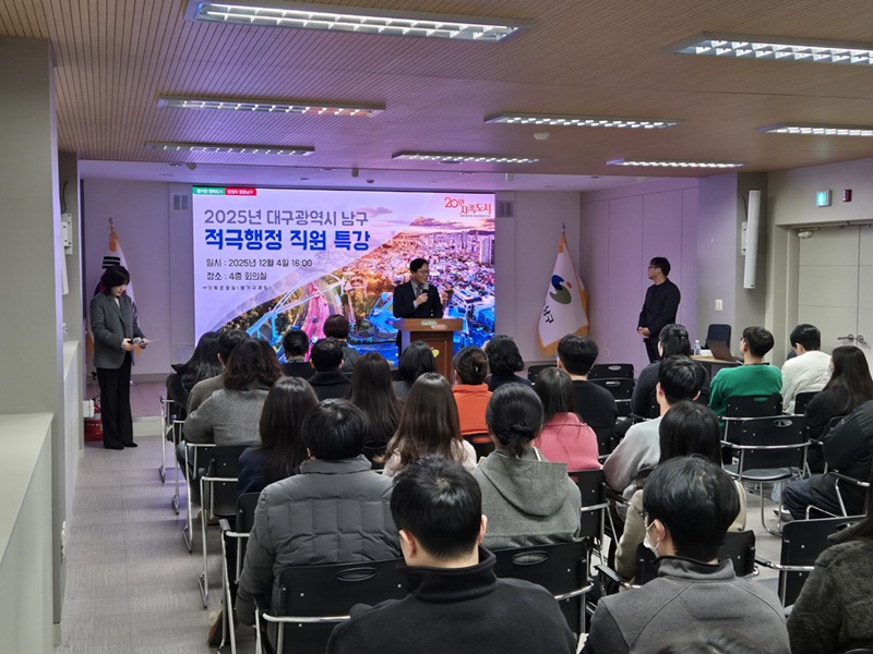 한편 남구는 공무원 조직의 행정 역량 강화를 위해 4일 ‘2025년 적극행정 직원 교육’을 실시했다. 인사혁신처 공해열 강사가 초빙돼 ‘국민의 일상에 스며드는 적극행정’을 주제로 적극행정의 개념, 우수사례, 실천 전략 등을 소개했다.