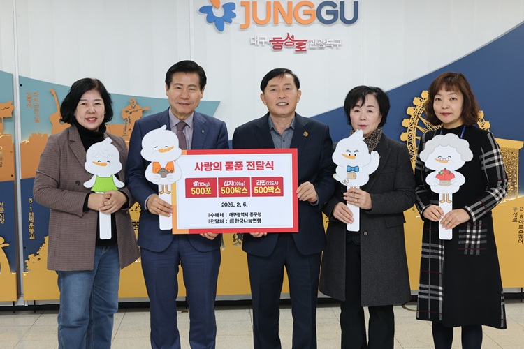 기탁식에는 안천웅 한국나눔연맹 총재와 류규하 대구 중구청장을 비롯한 관계자들이 참석했으며, 후원물품은 각 동 행정복지센터와 사회복지시설을 통해 도움이 필요한 가구에 전달될 예정이다.