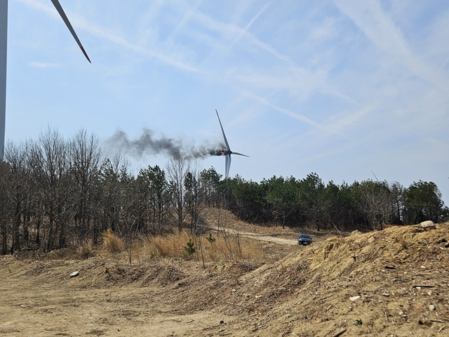 경북 영덕에서 풍력발전기 화재가 발생해 작업자 3명이 사망했다.