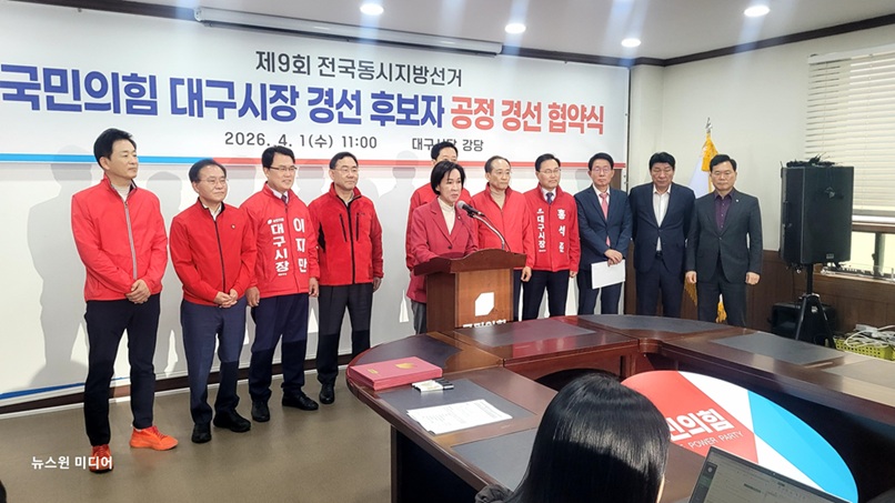 국민의힘 대구지역 정치권은 1일 대구시장 경선 후보자 공정 경선 협약식 공동 입장을 통해 공정하고 품격 있는 경선을 통해 지방선거 승리를 이끌겠다고 밝혔다.