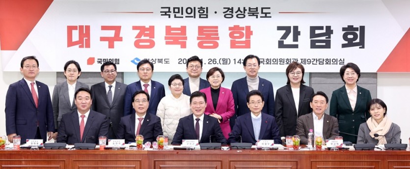 경북도와 국민의힘 경북도당은 26일 국회의원회관에서 대구경북통합 간담회를 열고 지역 국회의원들의 다양한 의견을 수렴하며 국회 차원의 협력 방안을 논의했다.