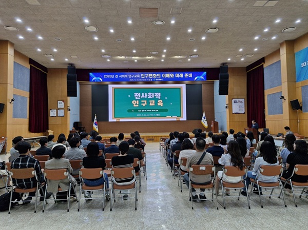 시는 24일 시청 시민홀에서 전 직원을 대상으로 ‘전사회적 인구교육’을 열고, 보건복지부의 ‘인구위기 대응 교육 추진지원 사업’ 일환으로 인구와 미래 정책연구원 이우택 전문강사를 초청해 강의를 진행했다.